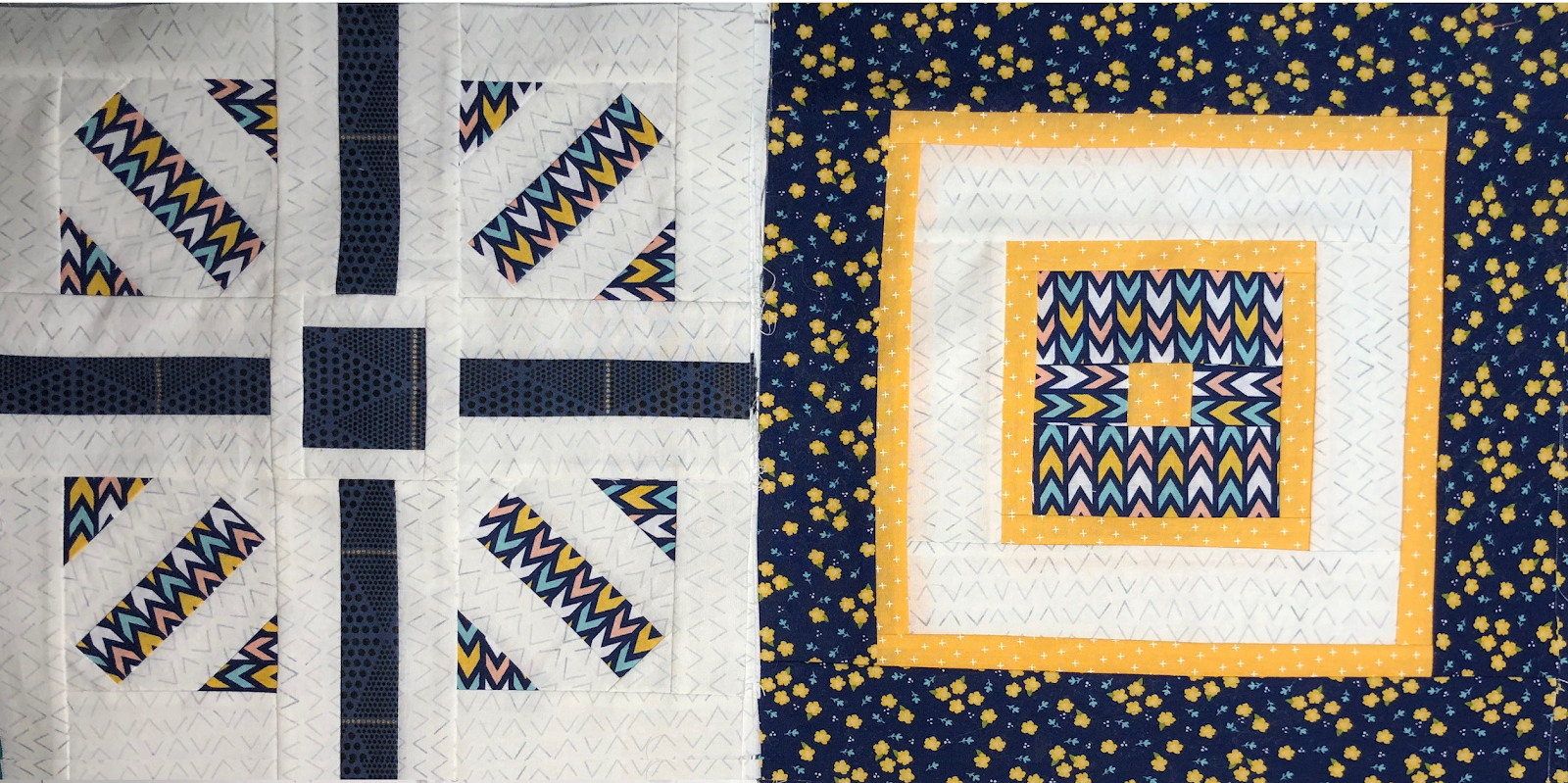 I used some Omnigrid Glow Line Tape to mark the size pieces I needed to cut (yellow). This made cutting nice and easy, with no mistakes. Sometimes triangles can be tricky to get the angles right. The other pieces were squares and rectangles so quickly cut. It went together beautifully, and I like the finished block.